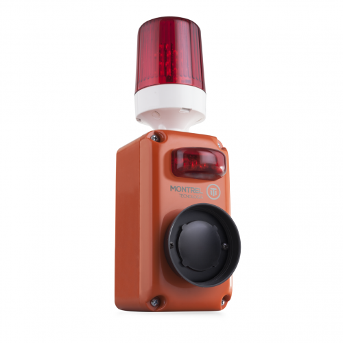 - Sinalizador audiovisual de alarme geral em ambiente industrial;
